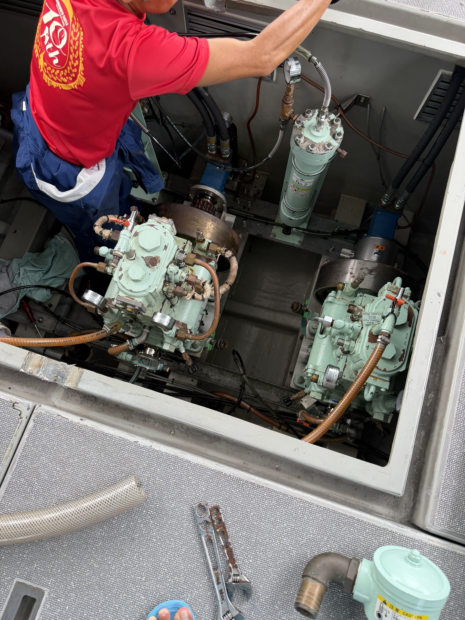 お天気 晴れ 皆さんこんにちは。びっきー事、ひびきです。 今日はコンプレッサーを解体・陸揚げしました~。 こう見えて100kg… More