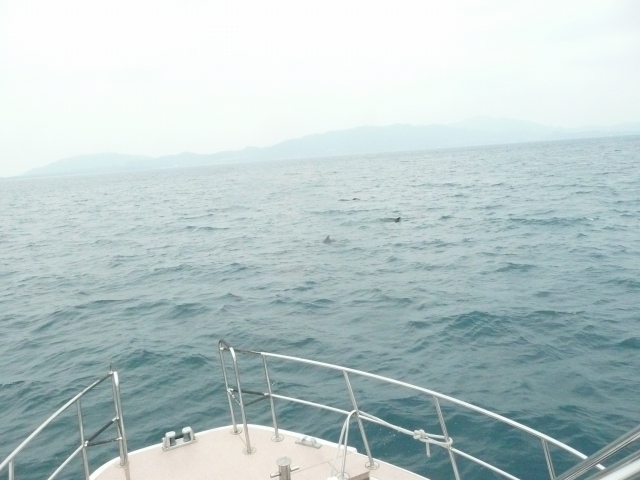 帰港中、イルカの群れに逢えたんです。