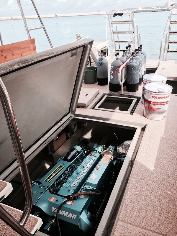 タクオは午前中、船のオイル交換を行っていました。