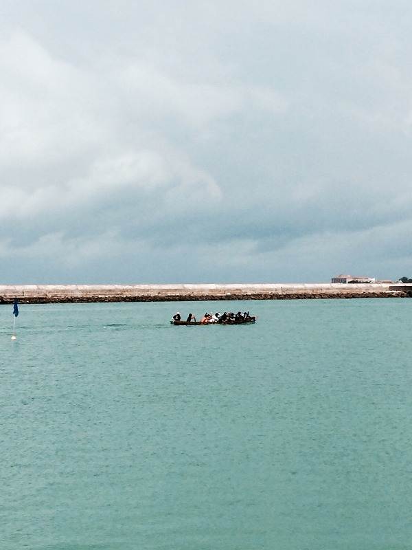 港ではハーリーを漕ぐ練習をしていました。