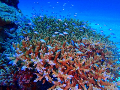 なんとっ!可愛らしいナンヨウハギがサンゴの上に♪
