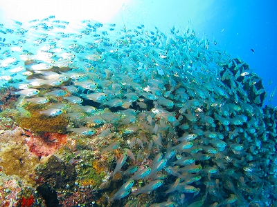 デバスズメダイの群れも、ぱくぱくプランクトンを捕食していました。