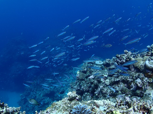 でも、壁のように群れるアカヒメジやノコギリダイたち。
