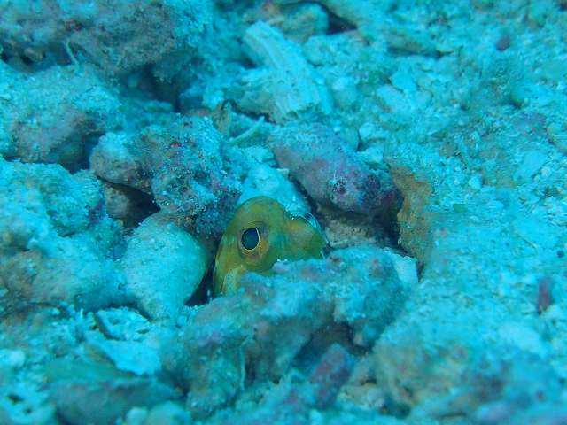 ダイバーなれした<黄色のカエルアマダイ>がじ~っと獲物を狙っていたので