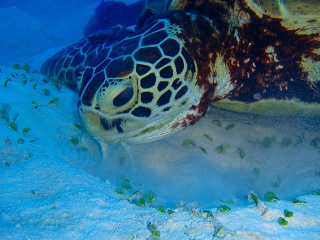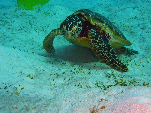 このカメがウミヒルモを沢山食べるので、かなり減ってきました。