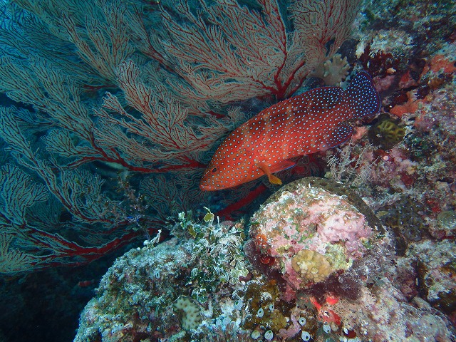 イソバナの下には色鮮やかなユカタハタ♪