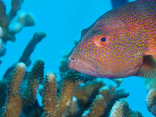 サンゴの影ではごはんの機会を狙っている大物も(>_<)