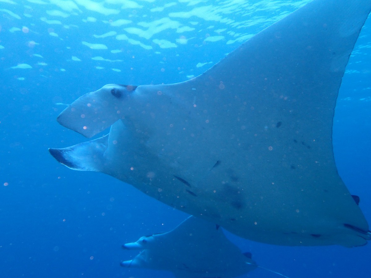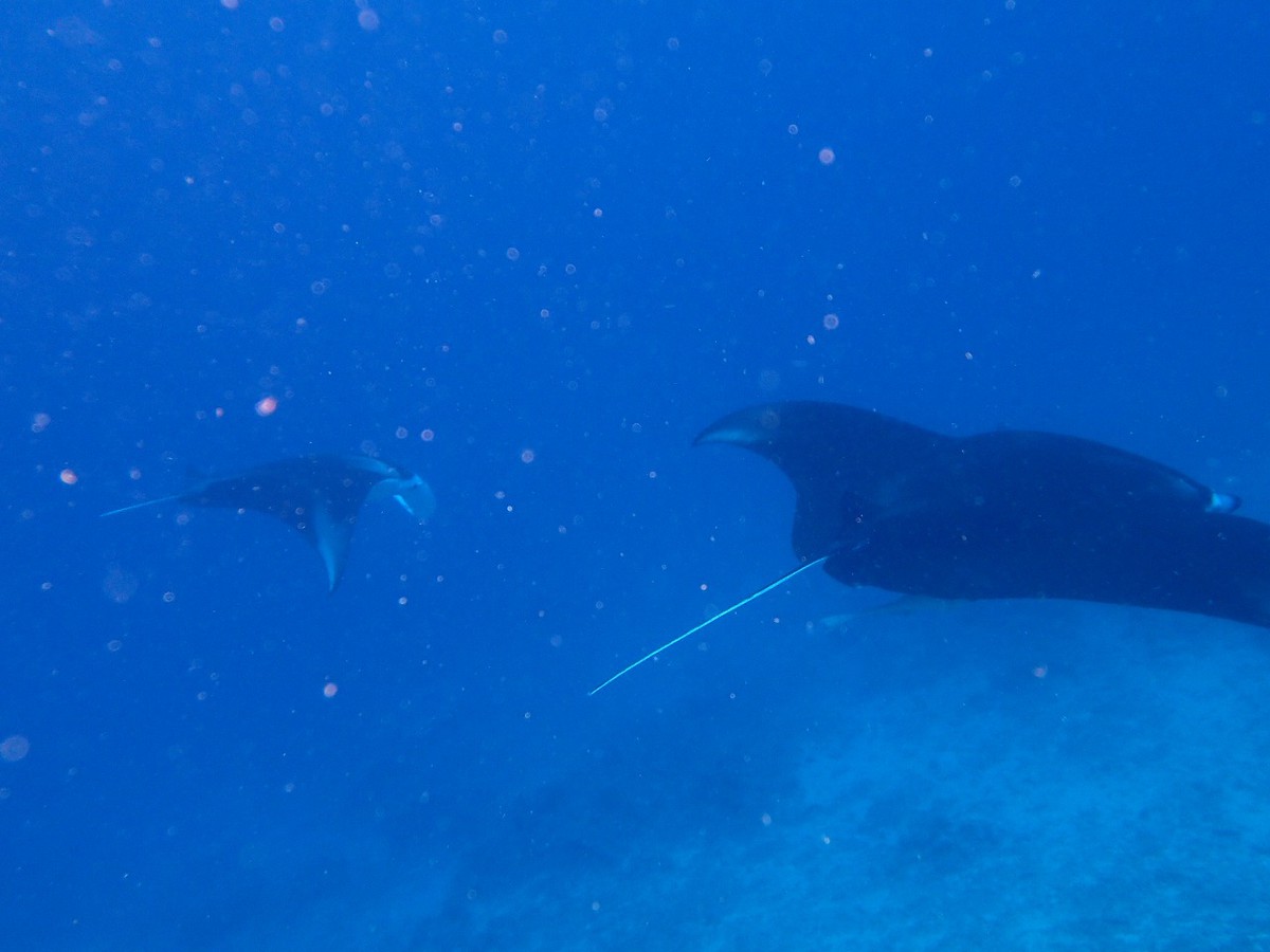ポイントの到着すると水面に2枚のマンタがいました。