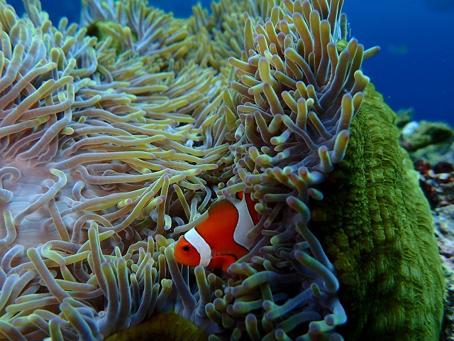 最後は浅場でカクレクマノミを狙って頂きました。