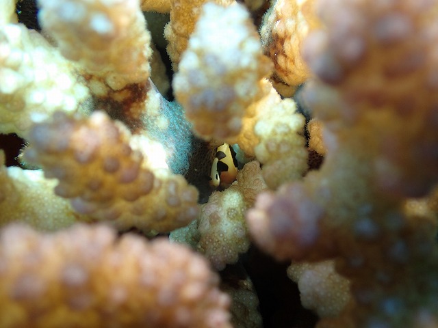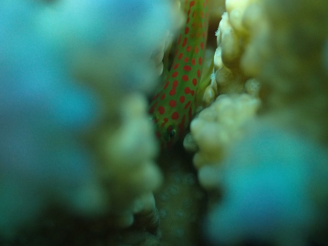 いっつもサンゴの奥に潜んでいるんです。夜型かしら???
