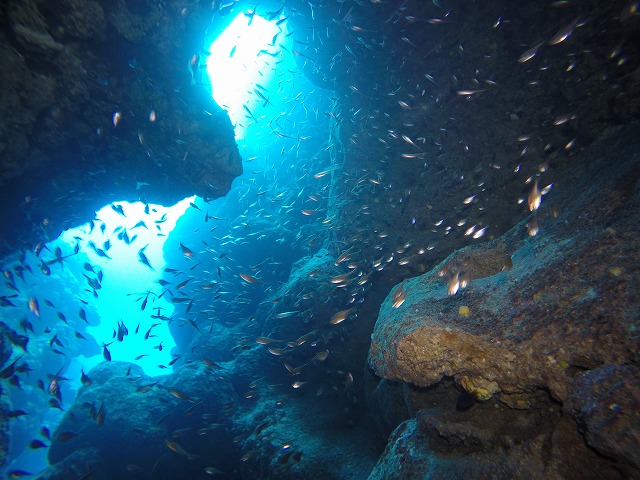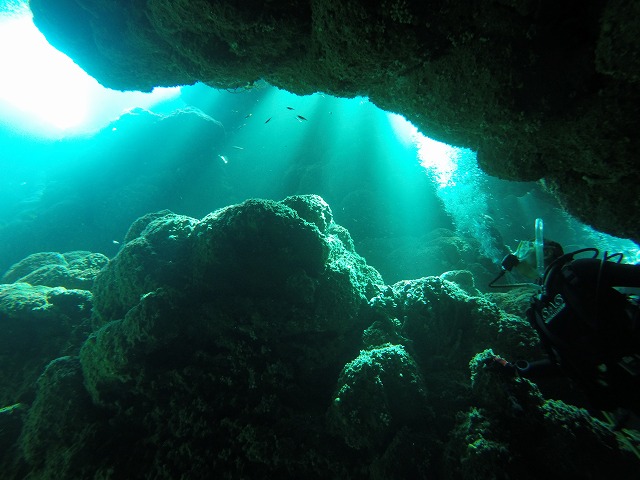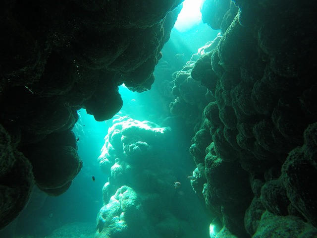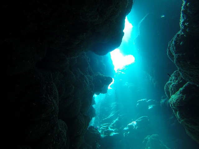 ここはサンゴと亀裂に差し込む光がキレイなところです。