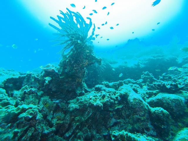メインの根に到着すると、マンタの姿はなく、ダイバーばかり。