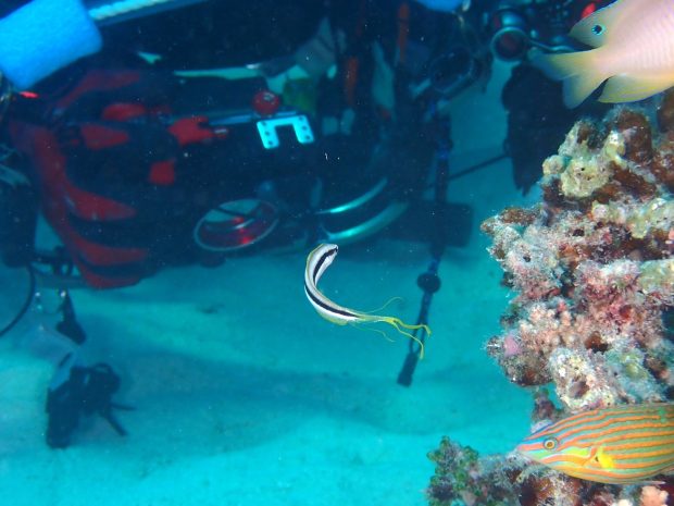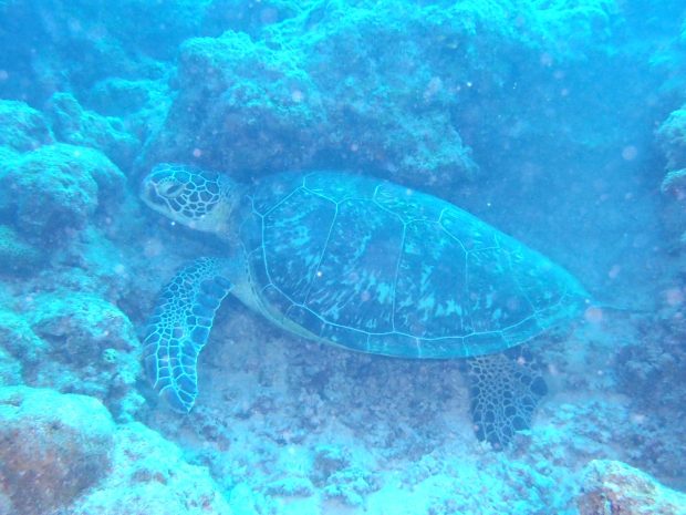日によってはカメの下からクレナイニセスズメが出入りしてます。
