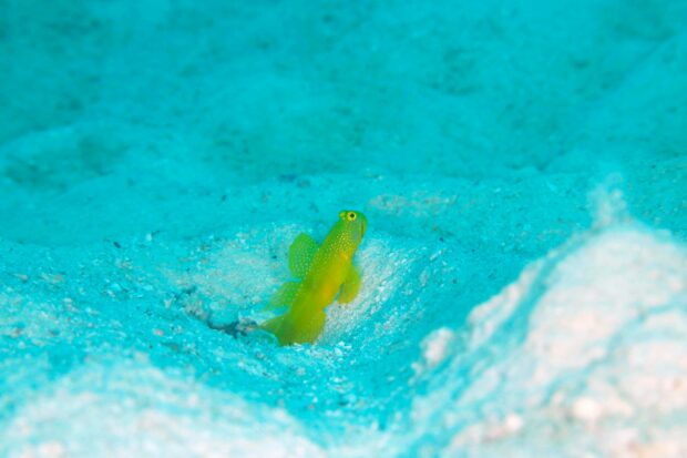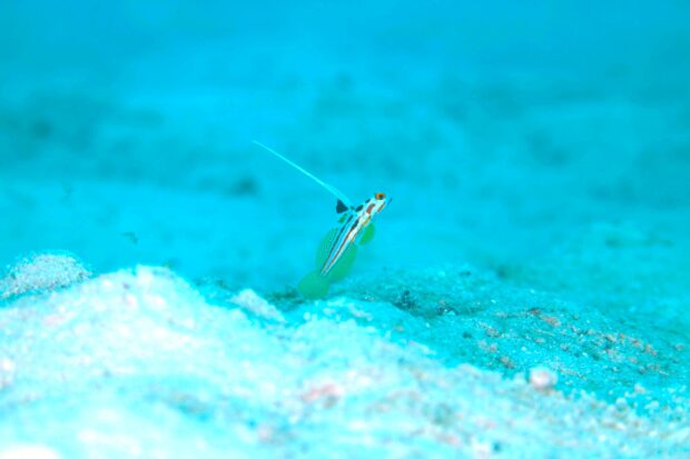 チンアナゴの家は崩れないように体の粘膜で補強されてます。