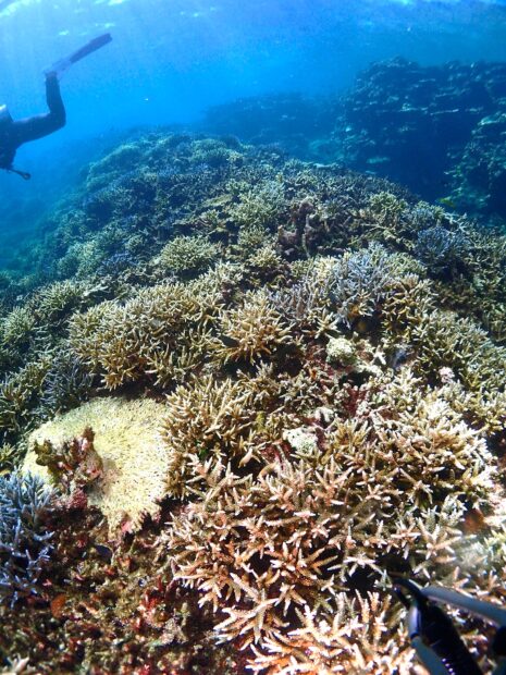 浅瀬のサンゴはまだ完全復活とまでいきませんが、