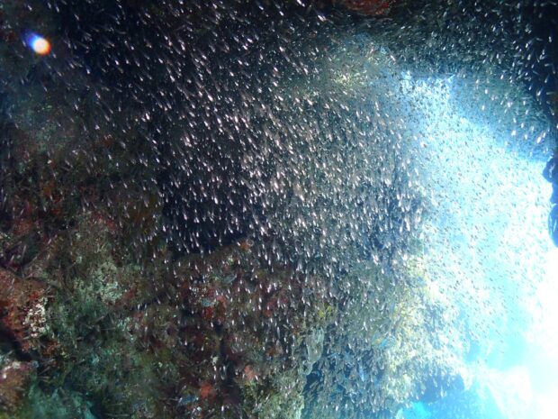 ここまでテンジクダイが群れてくれると魚も気持ちいい!