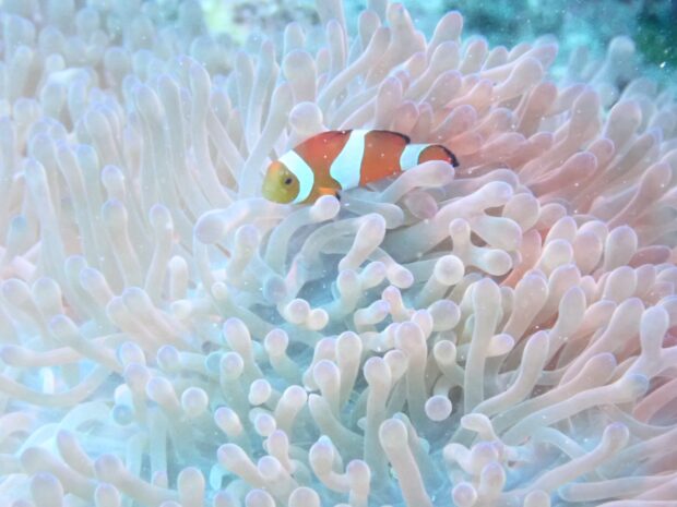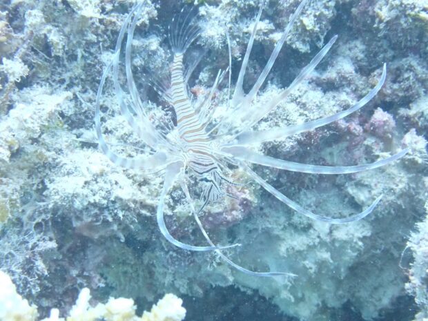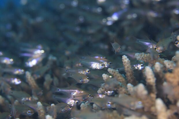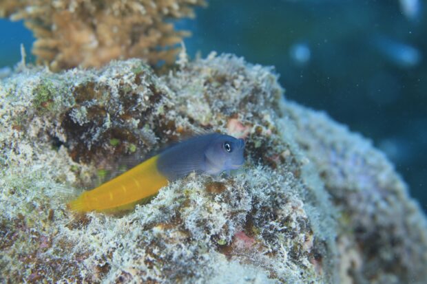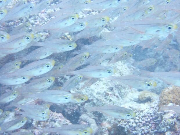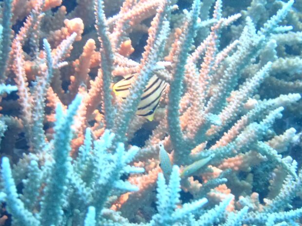 1本目のじゃがりこでは、過去で一番サンゴが美しく、その中にテンジクダイが密集しています。