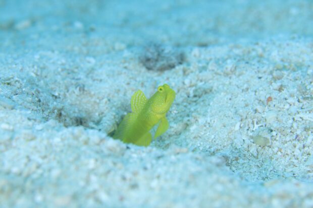 地形の中にはフタホシアトヒキテンジクダイが群れていまして