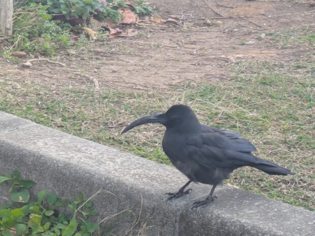 娘とマクドナルドでハンバーガーを購入して食べていましたら、こんなカラスがいました。