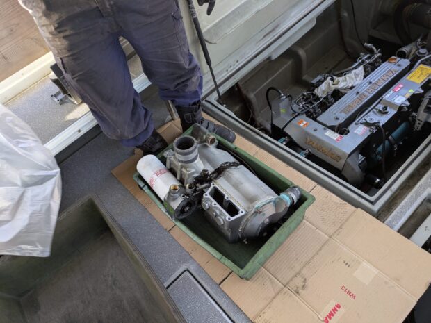 今回一番の作業。エンジンの部品交換です。
