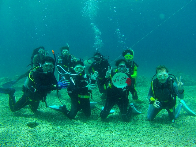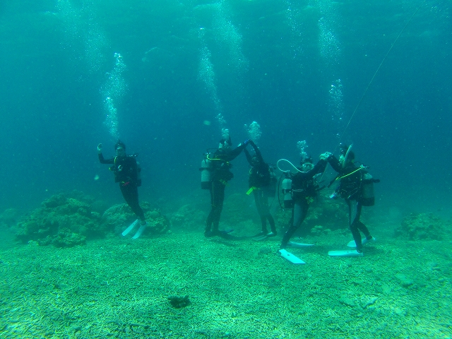 サンゴとハナダイは少しお預けにして、皆さんの協力の元、人文字を作ってみました。