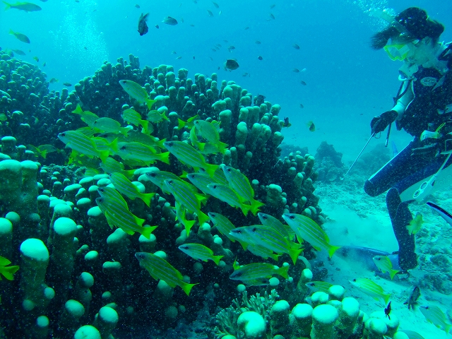 ワイドで、ヨスジフエダイやデバスズメダイの群れなどをゆっくり撮影してきましたっ★