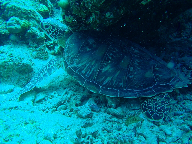 とっても良い子なアオウミガメがウトウト寝ているじゃないですかー(^0^)/