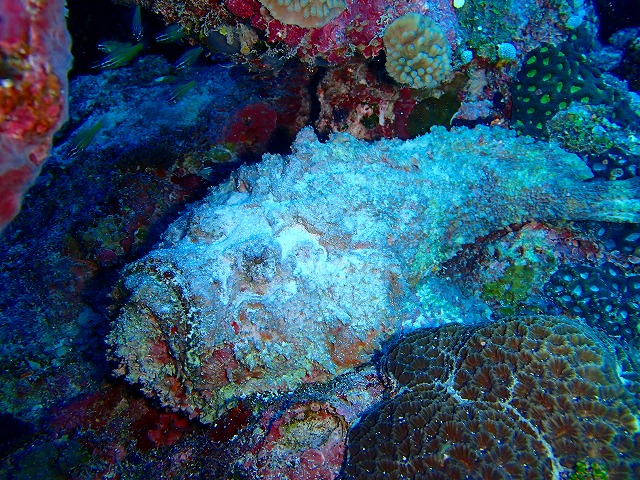 ダイナミックな地形ポイントで、地形を堪能しつつ、マンタ出たらいいな~と希望を持ちつつ潜りましたが出ず。出そうな雰囲気は出ているんだけどな~とめだか氏。ただ、透明度抜群で気持ちよかったですねー!