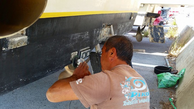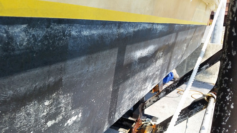 こうやって底をみると船底塗料の塗られていない部分がかなりありますね。