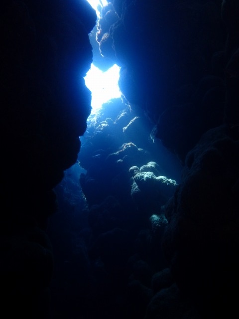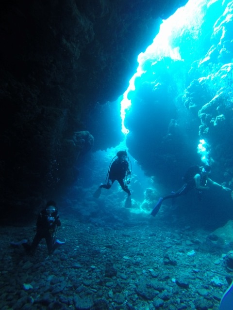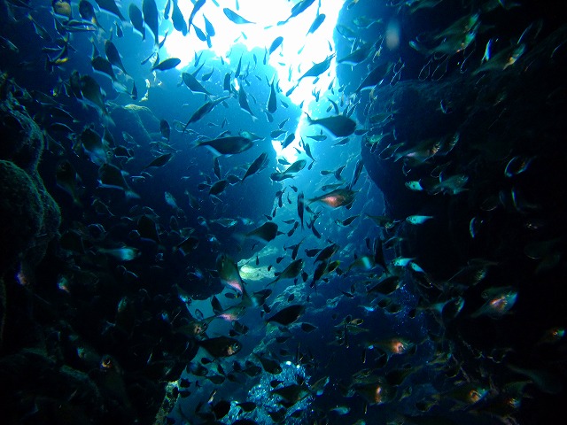 アーチの中には光が降り注いでいて、少し奥にはリュウキュウハタンポも群れていてライトを当てると綺麗でした♪