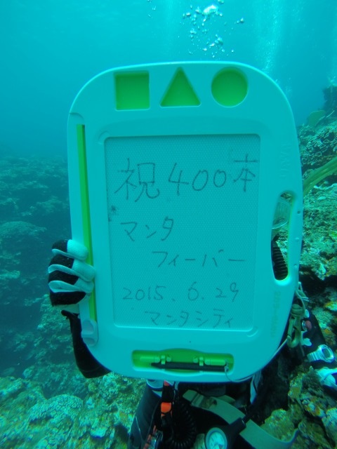 本当は今日の1ダイブ目で400ダイブ目だったんですが、せっかくだからマンタでお祝い♪ということでこちらで記念撮影☆