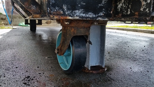 その際、台車を支えるタイヤのゴムが劣化し壊れてしまいました。