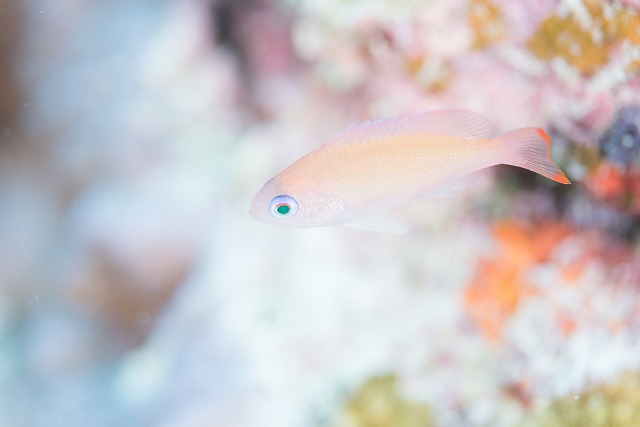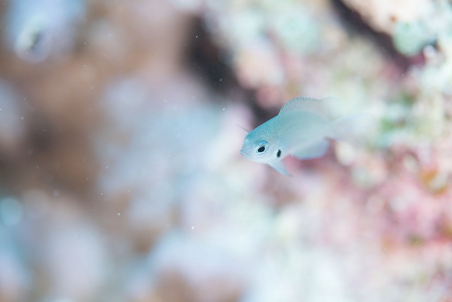 色とりどりのサンゴの間もよーく見ると、小さなハゼが居たり、キュートなスズメダイの子供が居たり♪