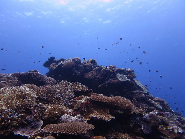サンゴの周りには沢山のスズメダイやテンジクダイが(´▽`*)