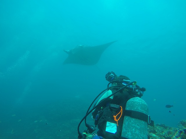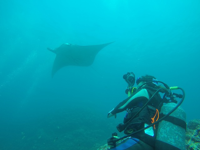 記念ダイブはビッグアーチで済ませて、3本目にマンタを狙ってみました。