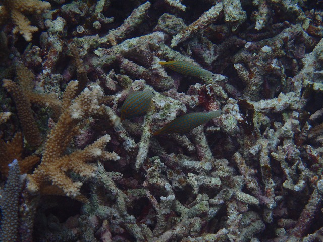 サンゴが沢山あるのでおしゃれなカラーリングのテングカワハギも発見☆