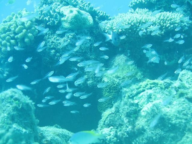 グルクンはライトで驚かすと、私たちに急接近★周りを取り囲み、すごい迫力でした(≧▽≦)