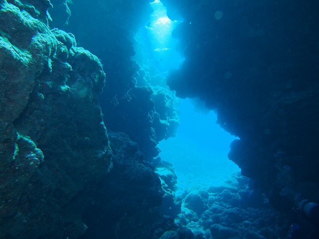 穴の中も抜群の透明度で光がキレイに差し込み、水底の白い岩までも照らさてキレイでした~☆