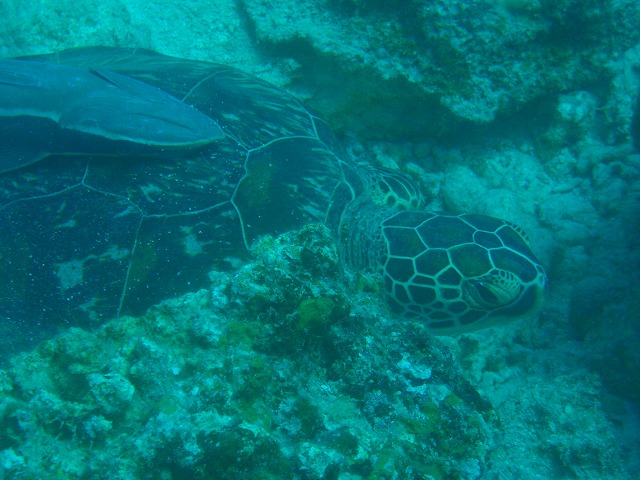 帰り道にはおっきなカメとべったりなコバンザメ♪