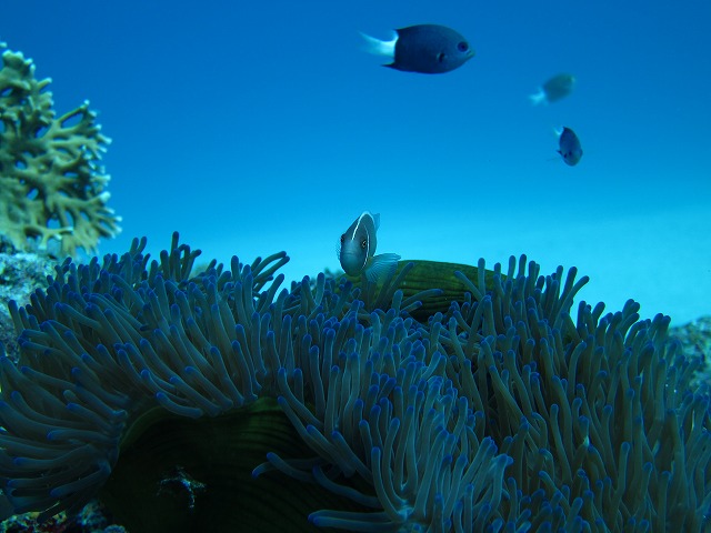 クマノミはとても迷惑そうでしたが、僕らには賑やかでとても楽しそうでした。