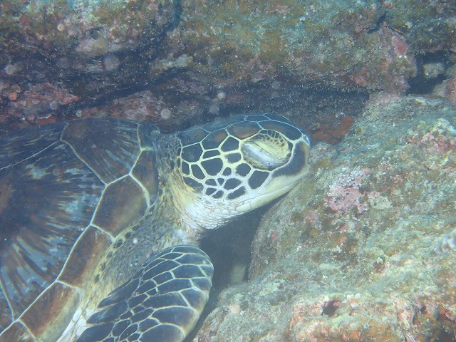 そこから、少し泳いで寝ている<カメ>を発見。