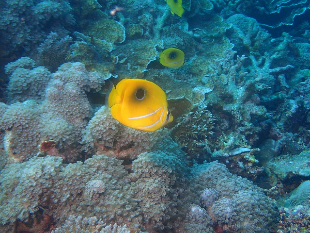 ラッキーなことに、ウミヅキチョウチョウウオが群れていました。