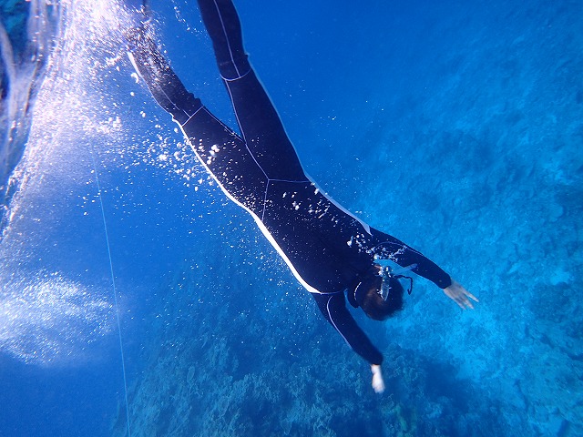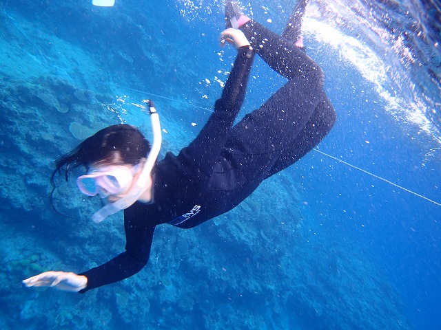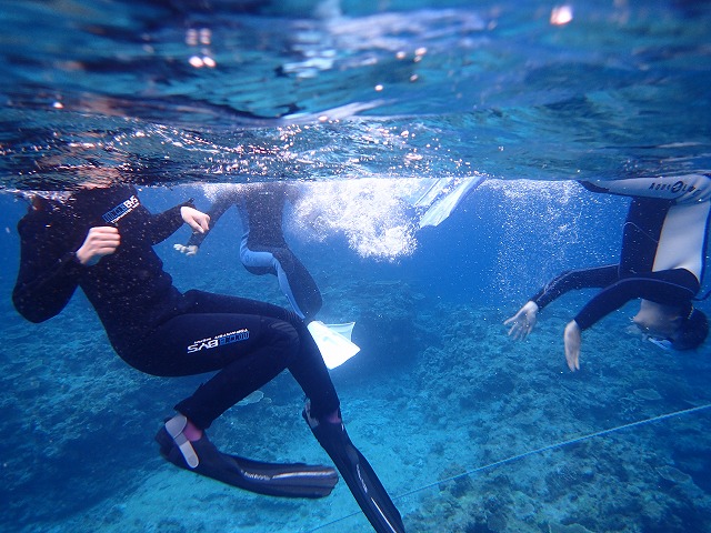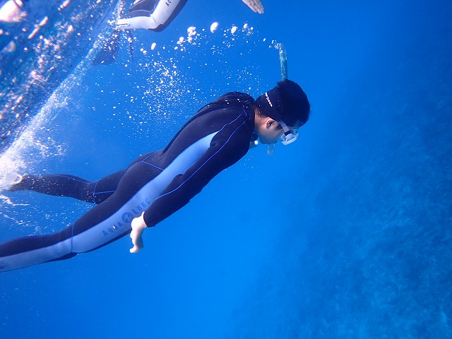 これだけで満足そうでしたが、さらに楽しんで頂こうと、スキンダイビングの練習です。