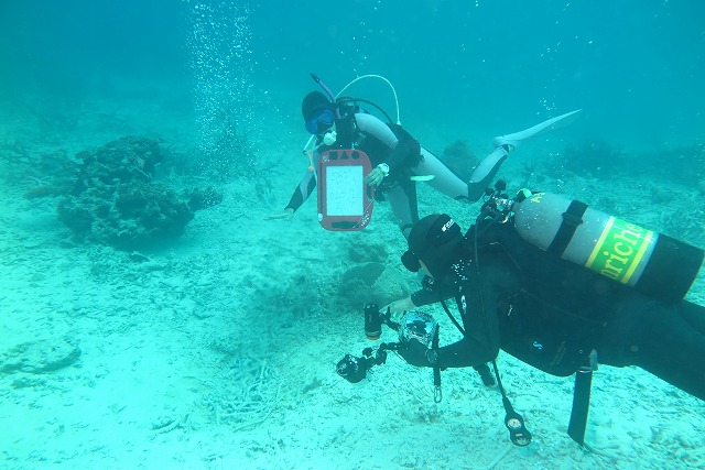 体験チームもサンゴにアカネハナゴイにコブシメ、バブルリングも