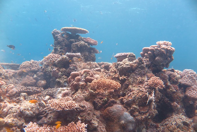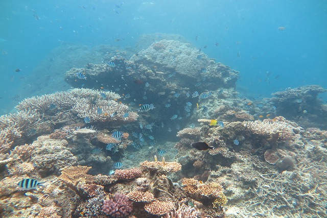 ハマサンゴがとっても多くのお魚のおうちになっていて