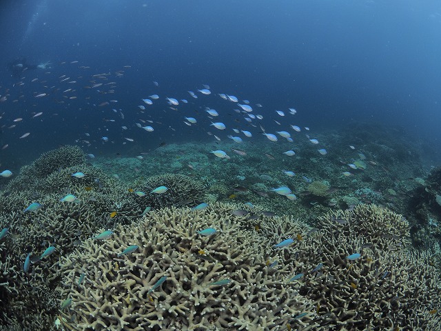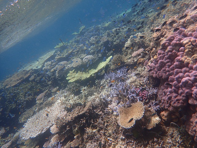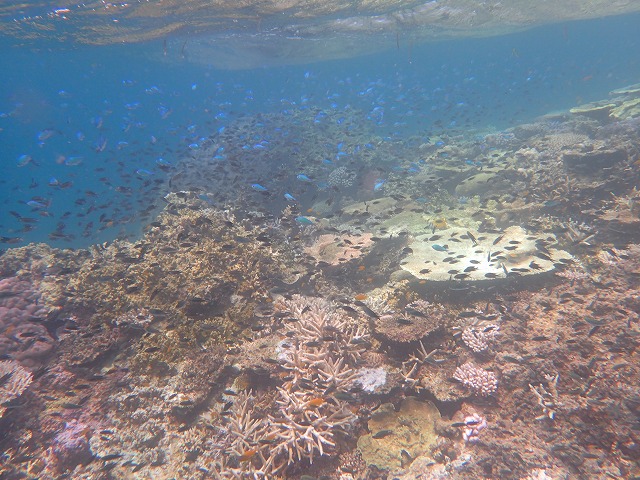 浅場のサンゴがキレイでしたが、いろんな処が白化が見られました。