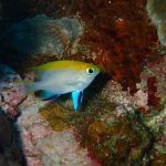 メインの根についてゆっくりハマクマノミさんを〜何て思っていたら、凄い勢いで攻撃をしてくるルリホシスズメダイ!!