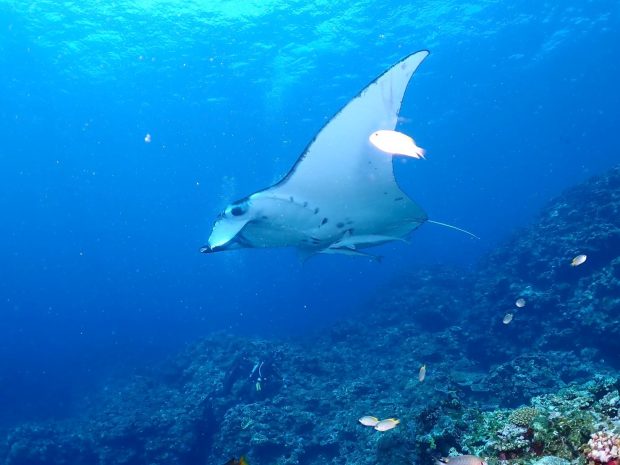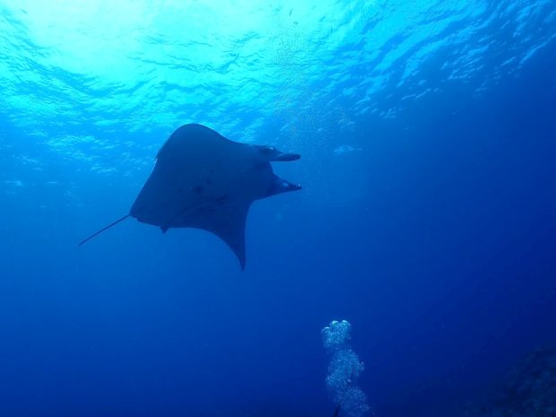 マンタ待ちの間にスイミーのようなノコギリダイを堪能。