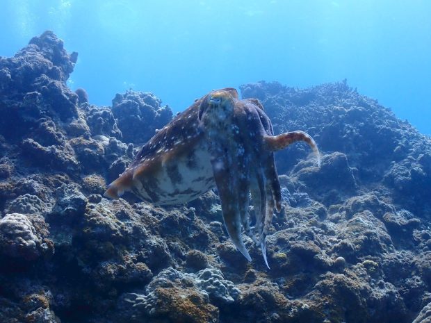 この時季はダイバーもシュノーケラーもコブシメに吸い寄せられていくので、