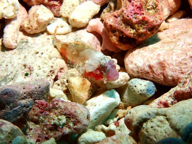 ガレ場をめくるとヒメサンゴカサゴの登場!